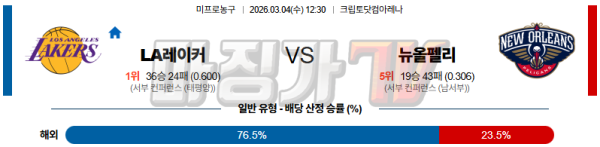 2026-03-04 NBA LA 레이커스 뉴올리언스 펠린컨즈 NBA분석 무료중계 스포츠분석
