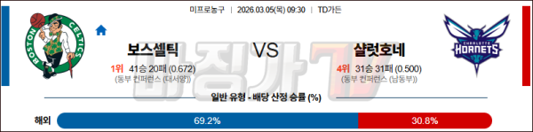 2026-03-05 NBA 보스턴 셀틱스 샬럿 호네츠 NBA분석 무료중계 스포츠분석