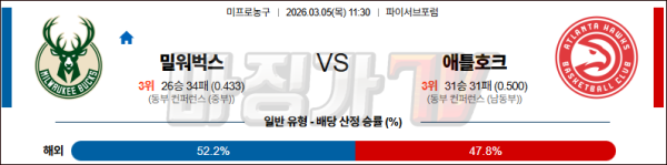 2026-03-05 NBA 밀워키 벅스 애틀랜타 호크스 NBA분석 무료중계 스포츠분석