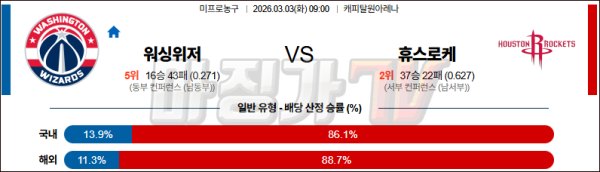 2026-03-03 NBA 워싱턴 위자드 휴스턴 로켓츠 NBA분석 무료중계 스포츠분석