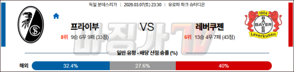 2026-03-07 분데스리가 SC 프라이부르크 레버쿠젠 해외축구분석 무료중계 스포츠분석