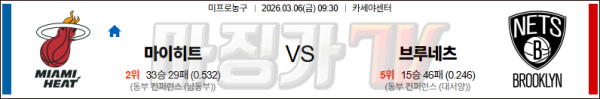 2026-03-06 NBA 마이애미 히트 브루클린 네츠 NBA분석 무료중계 스포츠분석