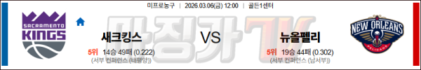 2026-03-06 NBA 새크라멘토 킹스 뉴올리언스 펠린컨즈 NBA분석 무료중계 스포츠분석