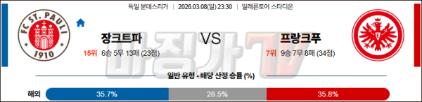 2026-03-08 분데스리가 FC 장크트파울리 프랑크푸르트 해외축구분석 무료중계 스포츠분석