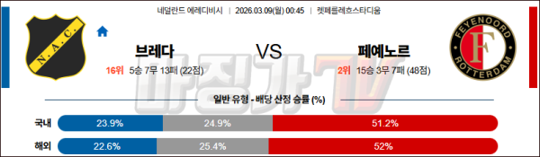 2026-03-09 에레디비지 NAC 브레다 페예노르트 해외축구분석 무료중계 스포츠분석