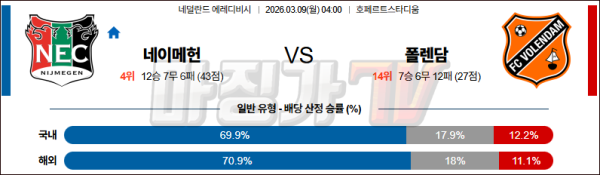 2026-03-09 에레디비지 NEC 네이메헌 폴랜담 해외축구분석 무료중계 스포츠분석