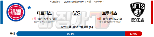 2026-03-08 NBA 디트로이트 피스톤스 브루클린 네츠 NBA분석 무료중계 스포츠분석
