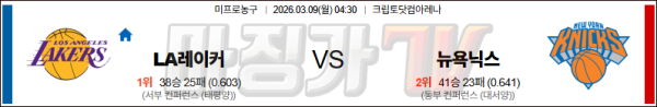 2026-03-09 NBA LA 레이커스 뉴욕 닉스 NBA분석 무료중계 스포츠분석