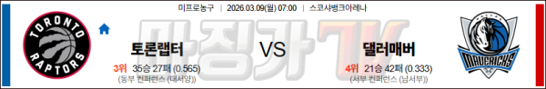 2026-03-09 NBA 토론토 랩터스 댈러스 매버릭스 NBA분석 무료중계 스포츠분석