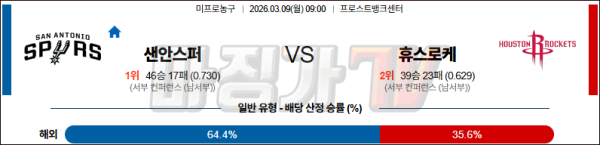 2026-03-09 NBA 샌안토니오 스퍼스 휴스턴 로켓츠 NBA분석 무료중계 스포츠분석
