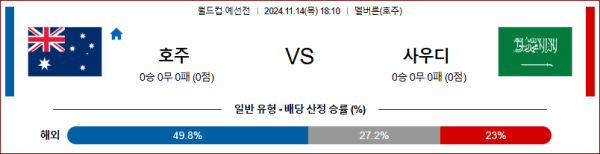 11월14일(목요일) 월드컵 예선전 호주 사우디아라비아 아시아축구분석 18시10분 완벽분석 꿀정보 !!