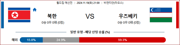 11월19일(화요일) 월드컵 예선전 북한 우즈베키스탄 아시아축구분석 21시00분 완벽분석 꿀정보 !!