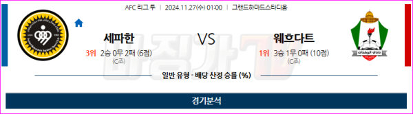 11월27일(수) AFC 챔피언스리그 2 세파한 FC 알웨흐닷 아시아축구분석 01시00분 완벽분석 꿀정보 !!