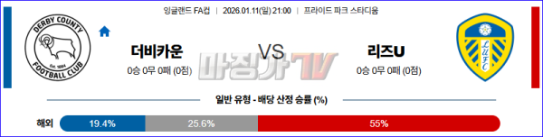 2026-01-11 잉글랜드 FA컵 더비 카운티 리즈 유나이티드 FC 해외축구분석 무료중계 스포츠분석