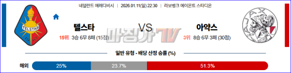 2026-01-11 에레디비지 텔스타 AFC 아약스 해외축구분석 무료중계 스포츠분석