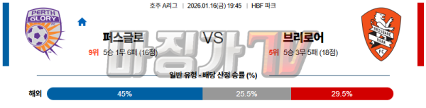 2026-01-16 호주 A리그 퍼스 글로리 FC 브리즈번 로어 FC 해외축구분석 무료중계 스포츠분석