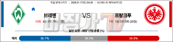 2026-01-17 분데스리가 SV 베르더 브레멘 프랑크푸르트 해외축구분석 무료중계 스포츠분석