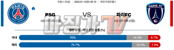 2026-01-13 프랑스 FA컵 파리 생제르맹 파리FC 해외축구분석 무료중계 스포츠분석
