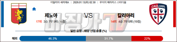 2026-01-13 세리에 A 제노아 CFC 칼리아리 칼초 해외축구분석 무료중계 스포츠분석