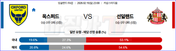 2026-02-15 잉글랜드 FA컵 옥스포드 유나이티드 FC 선덜랜드 AFC 해외축구분석 무료중계 스포츠분석