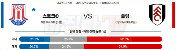 2026-02-15 잉글랜드 FA컵 스토크 시티 풀럼 해외축구분석 무료중계 스포츠분석