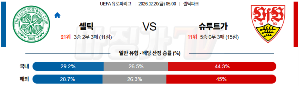 2026-02-20 UEFA 유로파리그 셀틱 FC VfB 슈투트가르트 해외축구분석 무료중계 스포츠분석