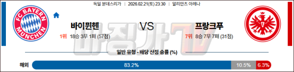 2026-02-21 분데스리가 바이에른 뮌헨 프랑크푸르트 해외축구분석 무료중계 스포츠분석