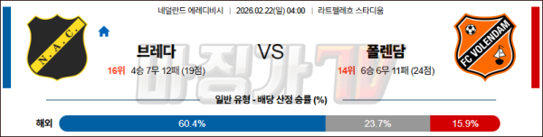 2026-02-22 에레디비지 NAC 브레다 폴랜담 해외축구분석 무료중계 스포츠분석
