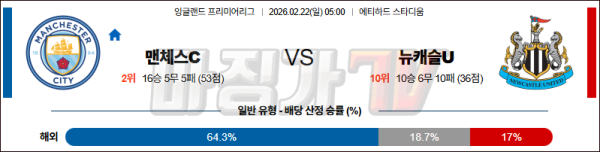 2026-02-22 프리미어리그 맨체스터 시티 뉴캐슬 유나이티드 해외축구분석 무료중계 스포츠분석