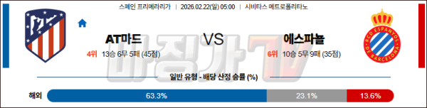 2026-02-22 라리가 AT 마드리드 RCD 에스파뇰 해외축구분석 무료중계 스포츠분석