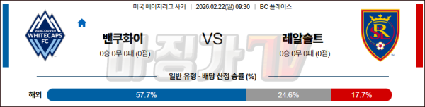 2026-02-22 메이저리그사커 밴쿠버 화이트캡스 FC 리얼 솔트레이크 해외축구분석 무료중계 스포츠분석