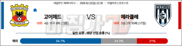 2026-02-22 에레디비지 고 어헤드 이글스 헤라클레스 알멜로 해외축구분석 무료중계 스포츠분석