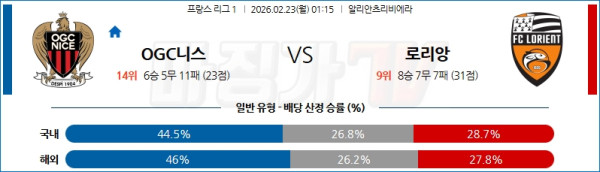 2026-02-23 리그앙 OGC 니스 로리앙 해외축구분석 무료중계 스포츠분석