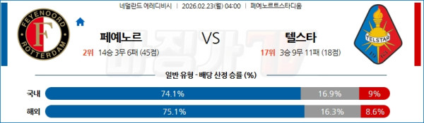 2602-02-23 에레디비지에 페예노르트 텔스타 해외축구분석 무료중계 스포츠분석