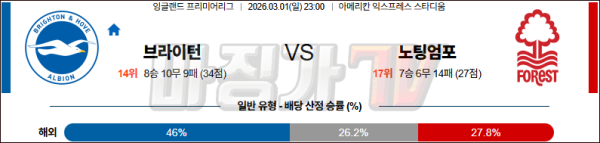 2026-03-01 프리미어리그 브라이턴 & 호브 앨비언 노팅엄 포레스트 해외축구분석 무료중계 스포츠분석