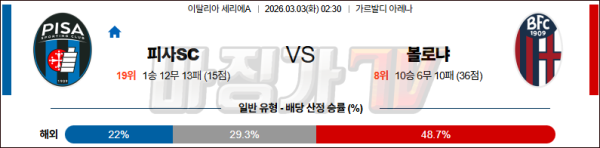 2026-03-03 세리에 A 피사SC 볼로냐 FC 해외축구분석 무료중계 스포츠분석