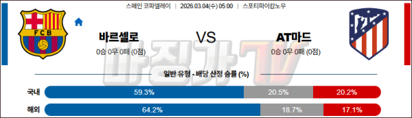 2026-03-04 스페인 코파델레이 FC 바르셀로나 AT 마드리드 해외축구분석 무료중계 스포츠분석
