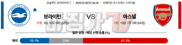 2026-03-05 프리미어리그 브라이턴 & 호브 앨비언 아스널 해외축구분석 무료중계 스포츠분석
