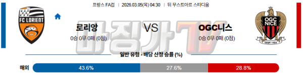 2026-03-05 프랑스 FA컵 로리앙 OGC 니스 해외축구분석 무료중계 스포츠분석