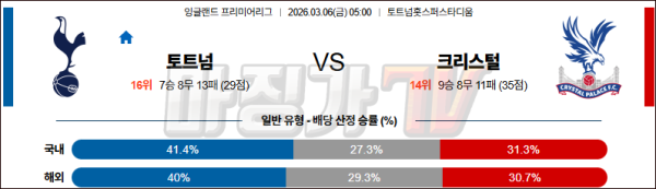 2026-03-06 프리미어리그 토트넘 홋스퍼 크리스탈 팰리스 해외축구분석 무료중계 스포츠분석