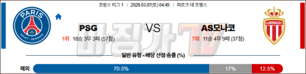 2026-03-07 리그앙 파리 생제르맹 AS 모나코 해외축구분석 무료중계 스포츠분석