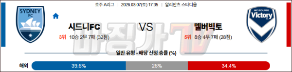 2026-03-07 호주 A리그 시드니 FC 멜버른 빅토리 FC 해외축구분석 무료중계 스포츠분석