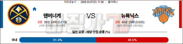 2026-03-07 NBA 덴버 너겟츠 뉴욕 닉스 NBA분석 무료중계 스포츠분석