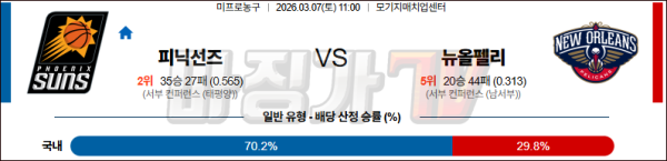 2026-03-07 NBA 피닉스 선즈 뉴올리언스 펠린컨즈 NBA분석 무료중계 스포츠분석