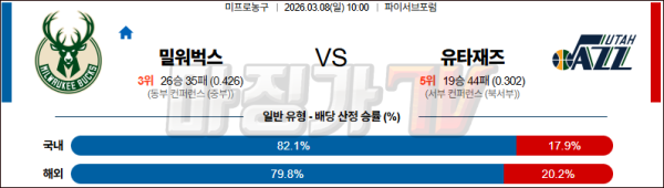 2026-03-08 NBA 밀워키 벅스 유타 재즈 NBA분석 무료중계 스포츠분석