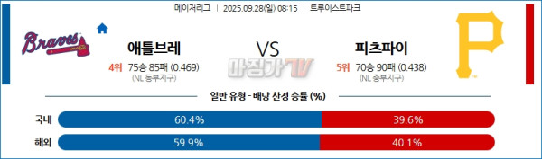2025-09-28 MLB 애틀랜타 피츠버그 MLB분석 무료중계 스포츠분석