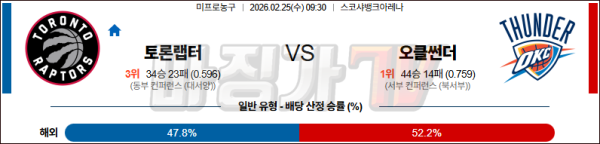 2026-02-25 NBA 토론토 랩터스 오클라호마시티 썬더 NBA분석 무료중계 스포츠분석