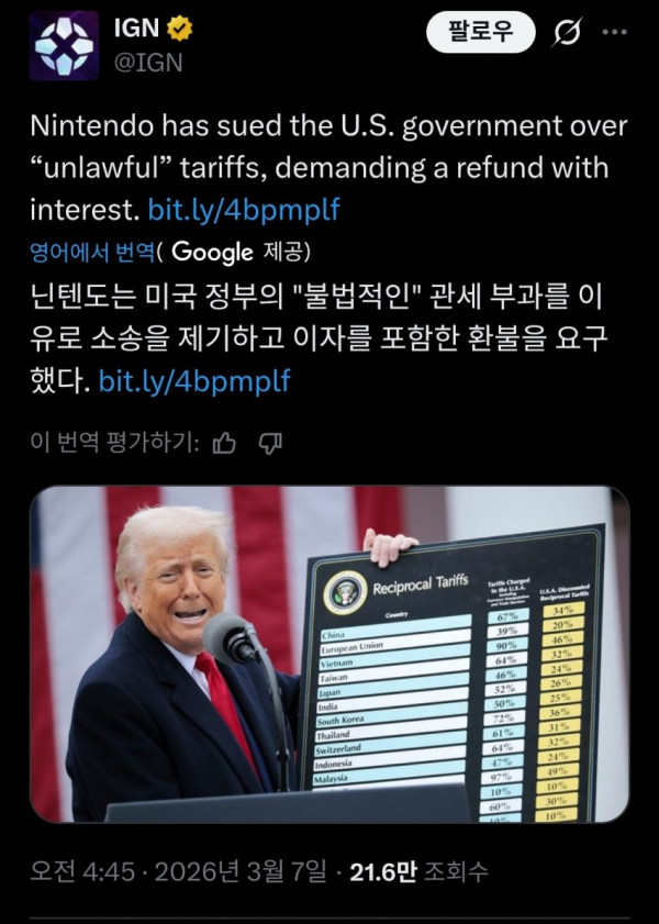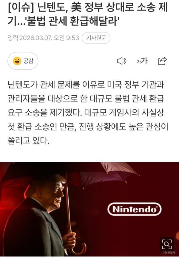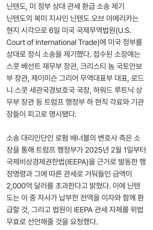 이거 닌텐도가 백악관 고소하는거아님?