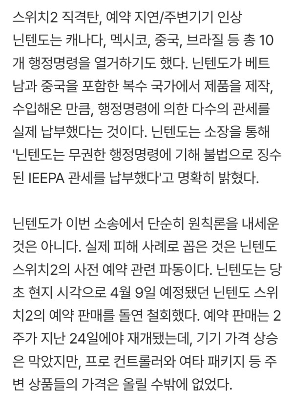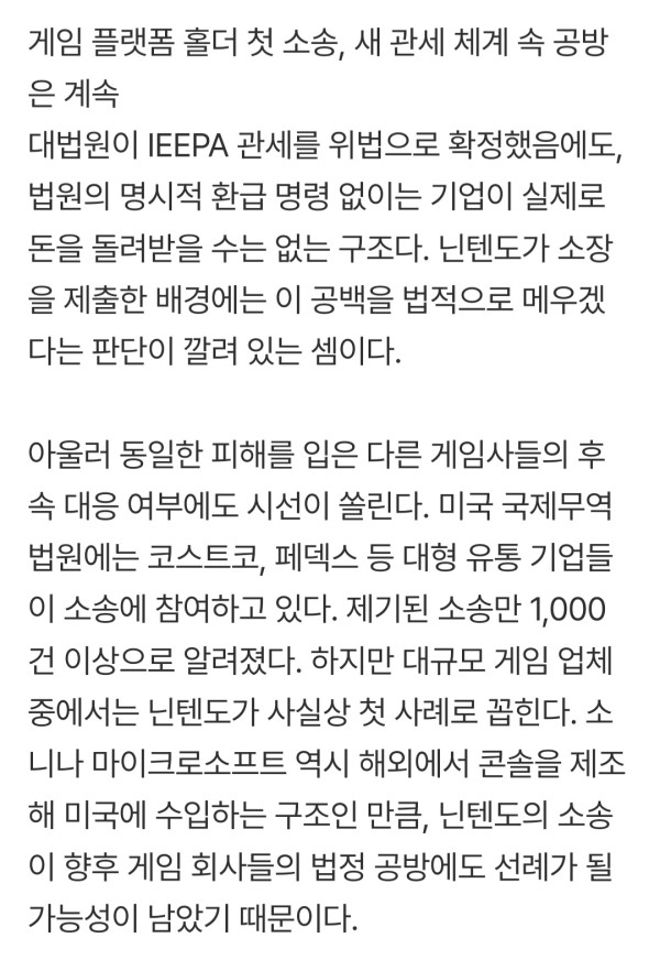 닌텐도 미국 정부 상대로 관세 소송