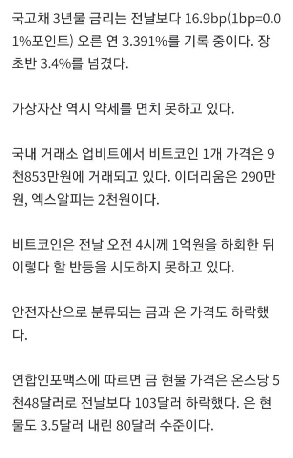 환율, 금융위기 이후 최고…방산株조차 하락세 3년물 국채 금리 연 3.4% 상회…비트코인도 1억원 깨져 국내 금융시장은 9일 이란 사태 장기화 공포에 휩싸여 크게 흔들렸다. 국제 유가가 100달러를 넘어선 가운데 환